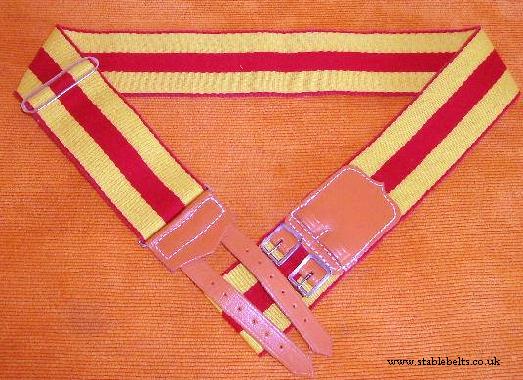 BELT COLOURS - scarlet, yellow, scarlet, yellow and scarlet. The outside scarlets being very narrow and the rest of the stripes being of equal width |
