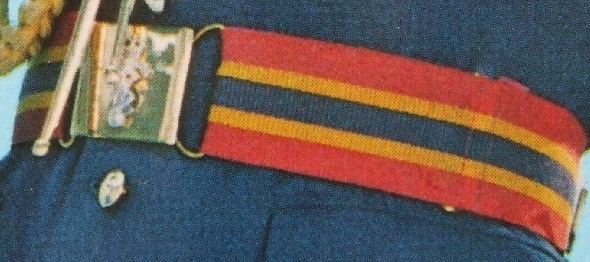 The belt is a normal belt of the Royal Artillery, minus it`s leather accessories or link buckle (Army cadets are renowned for constructing such mixtures when parts are scarce).