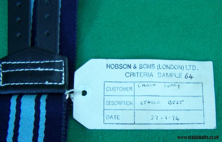 A sample stable belt from Hobson & Sons Dated 27.1 94. Customer 'Cadet Supply'.