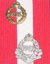 Cavalry cap & arm badges with stablebelt colours used as a background
