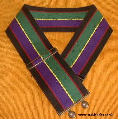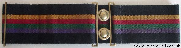 This belt is the Officers version, first type, the OR's belt (pictured below) has the same colours, but completely different arrangement & width of stripes, the clasps for OR's for the first type have a brass 2 lobe clasp, second type 3 lobe brass and third type 3 lobe bronze.