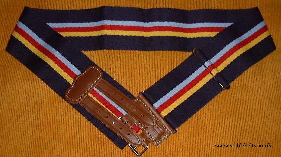 | BELT COLOURS - dark blue with thin red centre stripe, flanked by light blue (top) and yellow (bottom). Light/dark blue for Corps Bands; red for Infantry Bands and yellow for Cavalry Bands. |