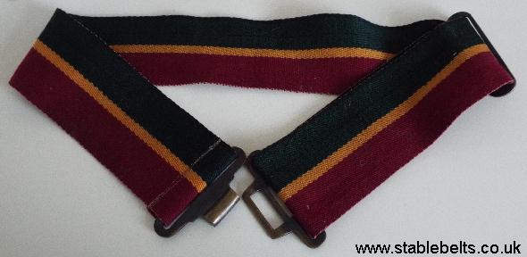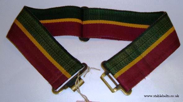 - green and maroon divided by a thinner gold stripe