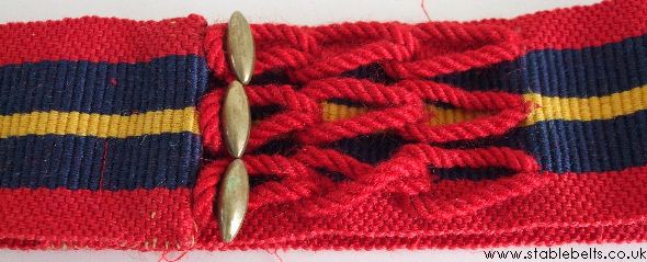 Close up of the three brass toggles & cord loops