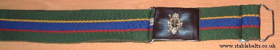 - green, with a central blue stripe which is flanked by thin yellow stripe (upper) and thin red stripe (lower)