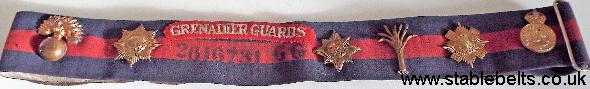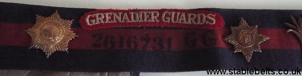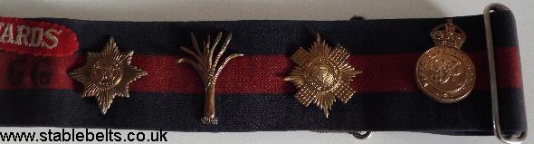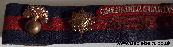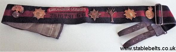 An early stable belt, Grenadier Guards, with leather pouch and the addition of cap badges from the Guards Regiments