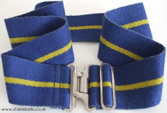 It is possible that the RHA type belt with metal buckle is that of 3rd Regiment RHA (although the dimensions should be Royal Blue 15/16, Yellow 3/8, Royal Blue 15/16 inch). The design and colour of the current RHA belt (Royal Blue 1 1/8?, Yellow ¼, Royal Blue 1 1/8 inch), was not introduced until 1970, when it was decided that ALL the RHA would wear the same belt. This did not stop the Bty belts being worn, but it did bring in a belt for all those members of the RHA who did not have a belt of their own.