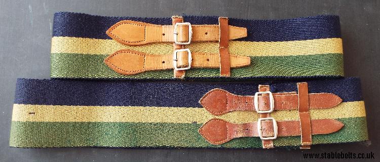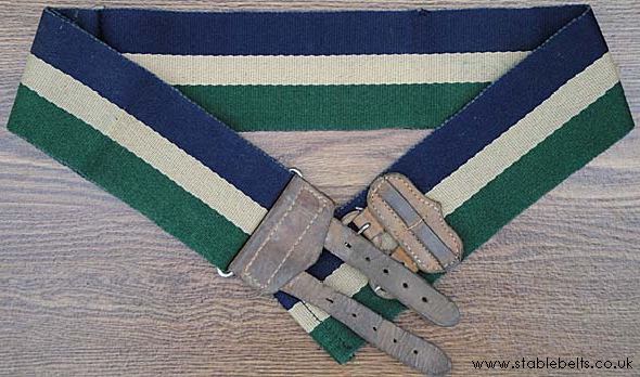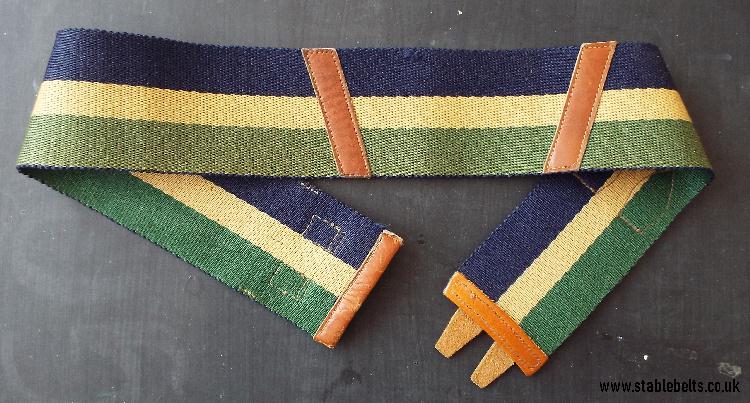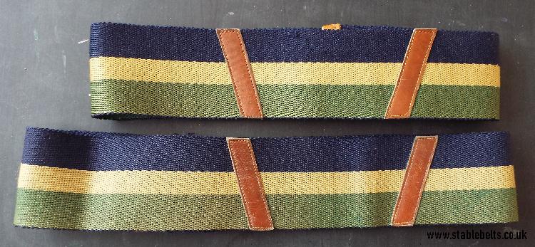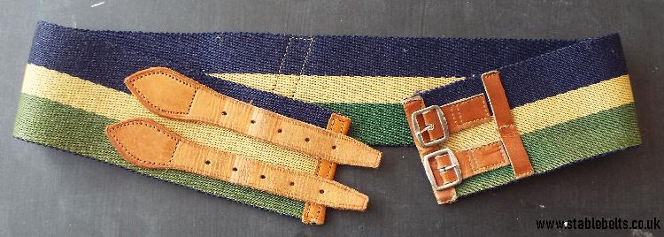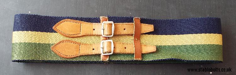- blue, buff and green with brown leather straps