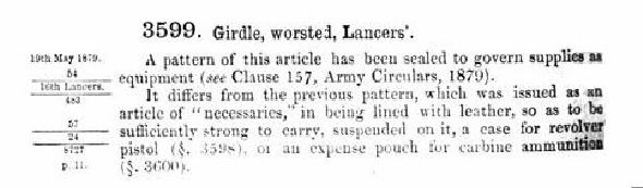 The reinforced Girdle, worsted, Lancers' was to enable the newly introduced Case, leather, brown, B.L. revolver to be worn on the Girdle, the Army finally having decided to take a revolver into service.