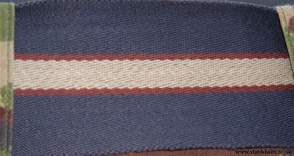 - outer navy, with a central silver stripe flanked by thin red stripes. Black straps and buckles