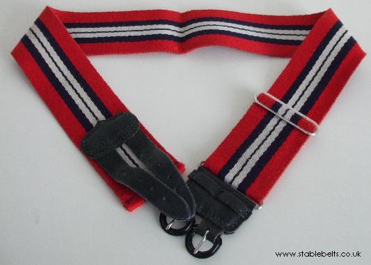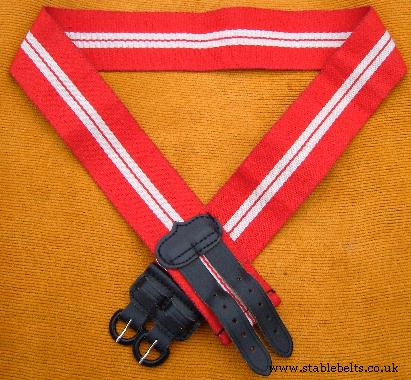 BELT COLOURS - - (Top/middle pictures) broad outer red stripes with a central band of white, divided by a thin navy blue stripe and flanked by wider navy blue stripes. Used between 1993-1998