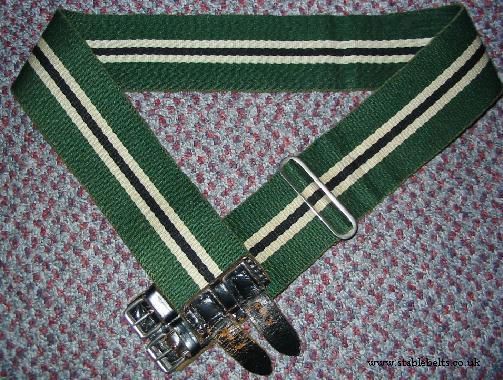 - outer green, central white stripe, with a narrow black stripe in the middle