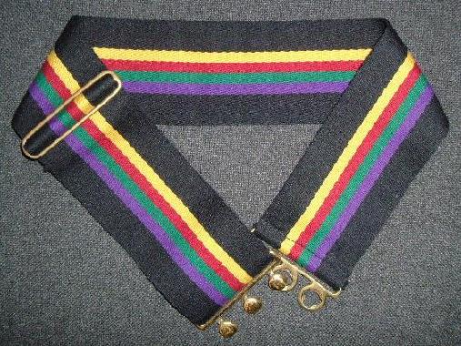 This belt is the Officers version, first type, the OR's belt (pictured below) has the same colours, but completely different arrangement & width of stripes, the clasps for OR's for the first type have a brass 2 lobe clasp, second type 3 lobe brass and third type 3 lobe bronze.