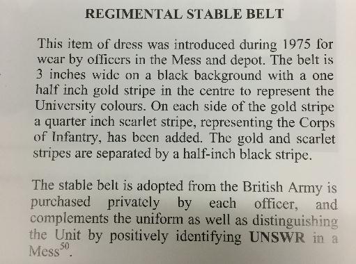 I was helping out at the Anzac Memorial Centenary Project (AMCP) and was flicking through the University of NSW Regt regimental history and found the attached image of an officer from the mid to late 70s - but its the non regulation stable belt that caught my attention. I asked the curator and guess what, they have one in the collection.